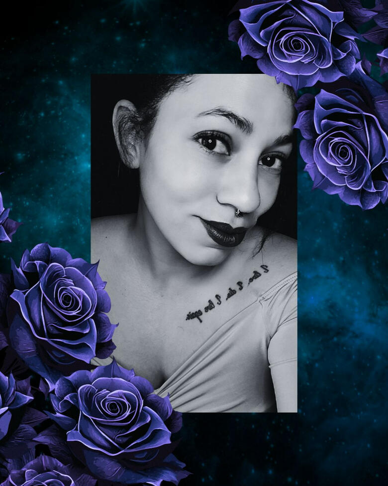 With a vivid and dangerous imagination, a black heart that still feels too deeply, and lived experiences that bleed onto the page, her books reflect the ache to create something beautiful and meaningful—and leave bruises while doing it. From infinite stars to dark, bloodstained kingdoms, one must be wary when reading her work: she wields anguish and angst like daggers and always has more hidden on her person.